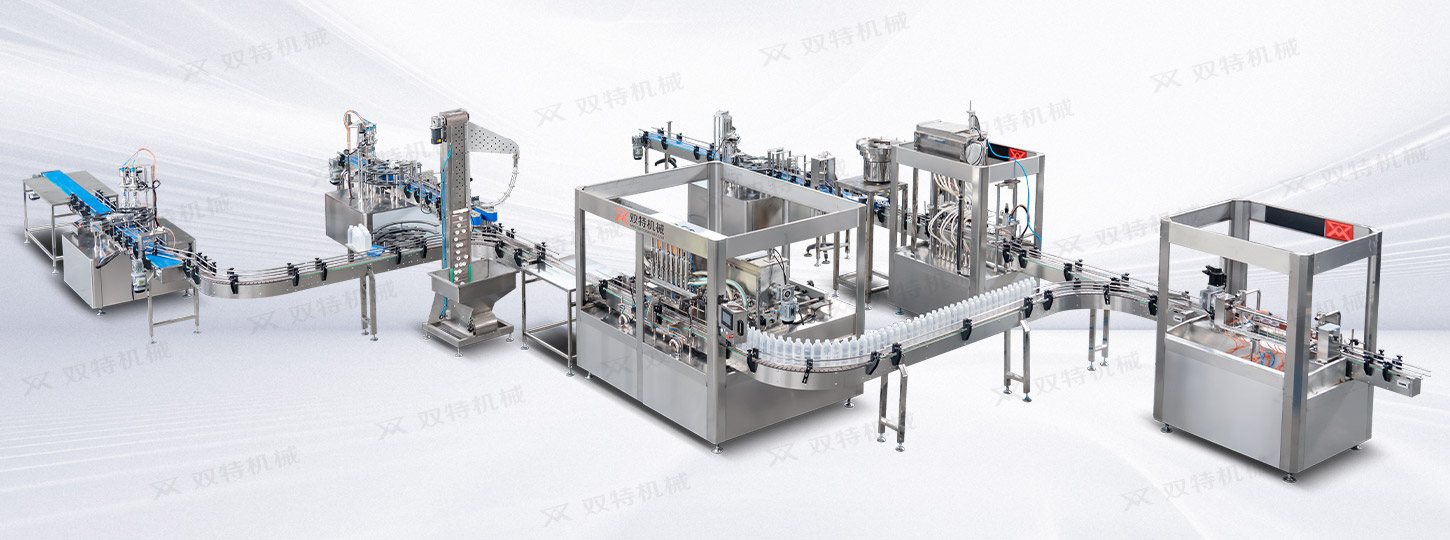 雙特機械專注于洗瓶--烘干滅菌--灌裝--真空旋蓋--巴氏殺菌--貼標--套膜--裝箱--碼垛全系列的成套灌裝生產線。
